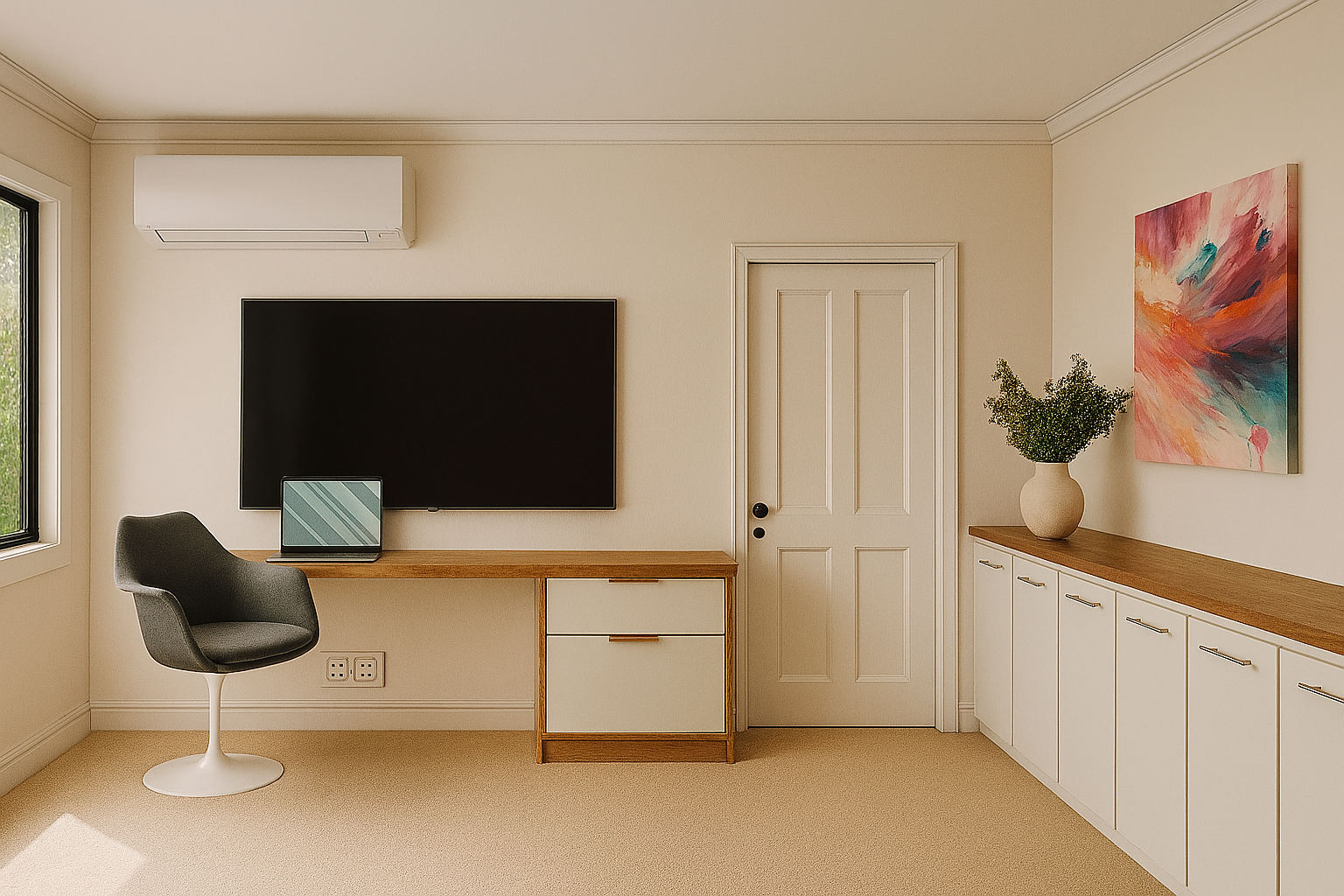 Over time, the house has adapted to accommodate different ways of living and working, including the integration of a home office.